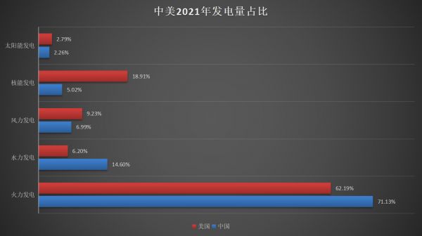 我国核能发电占总发电量仅5%,与核电发达国家——美国占比达18.91%相比,可以看出我国在核能发电的利用上还有很大的成长空间。