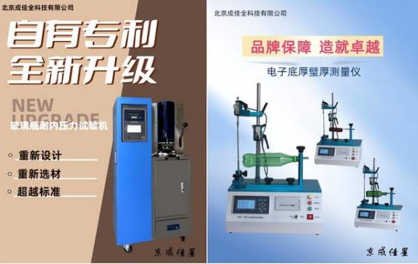 2010年,北京成佳全科技公司(以下简称‘公司”)成立于首都北京,十余年来,公司秉承“专业造就卓越,创新引领发展”的经营理念,深耕包装材料检验检测行业,拥有“京成佳星”品牌,逐步形成完整的产品体系。产品包括玻璃瓶内压力测试机、玻璃瓶抗机械冲击测定仪、数显垂直轴偏差仪、数显底厚壁厚测量仪、偏光应力仪及玻璃瓶热冲击试验机等 。
