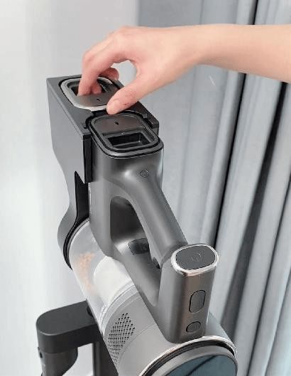 在手持的主机部分,自带一个圆形LED数显大屏,可以实时显示吸尘器的工作状态及清洁区域的脏污程度。开启AUTO智能模式,红外线感应技术可以灵敏检测各处微尘,自动调节吸力大小。无需手动切换,操作简单方便,即使是老人也能轻易上手。搭载10W+转/分钟的BLDC无刷电机,吸力最高可达150AW。日常应对家居大部分的清洁场景,是完全没有问题的。配合6重精密过滤系统,内含多锥气旋技术和双海帕滤芯,可以有效吸附大于0.3μm的灰尘颗粒,拦截99.9%的微尘、尘螨及其他有害物质,严防二次污染,呵护呼吸道健康。