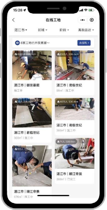 工地属地化:“简一美好家”小程序开设了“工地直播间”、“在线逛工地”等功能板块。铺贴交付过程透明管理,直观展现简一工地施工铺贴前、铺贴中、铺贴后的高标准。让消费者可以看到最真实的施工细节,同时也能知道好工地的标准是什么。
