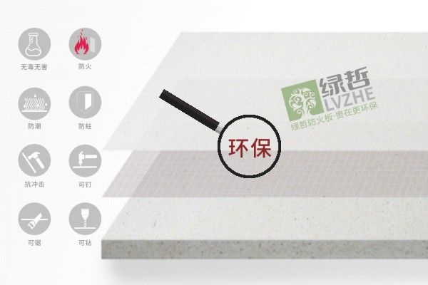 绿哲玻镁板绝不含石棉、甲醛、苯及有害放射性元素,遇火无烟、无毒、无异味;有良好防火性能,是不燃板材,火焰持续燃烧时间为零,800°C不燃烧,1200°C无火苗,达到最高防火不燃级别A1级, 是国内工程项目的首选产品。