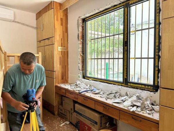 旧窗拆除、新窗更换,顶着烈日骄阳,工人师傅有序完成施工,给孩子们“窗”造一点小小的惊喜。