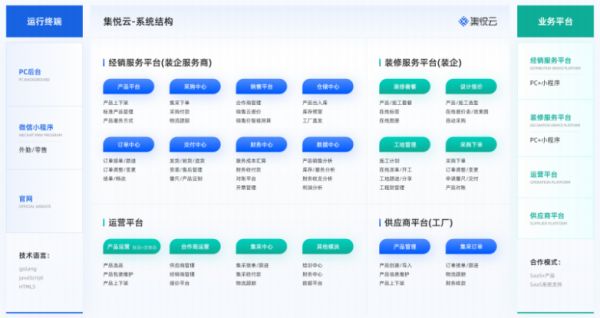 集悦是一家综合性家居建材供应链服务平台,位于东莞莞城,通过整合全国范围内的物流中心、制造工厂和品牌运营商,构建了一个覆盖全国的供应链网络,为客户提供集传统产品研发、销售、采购、仓储、运输、安装等服务的一站式解决方案。集悦的信息化服务平台,不仅能高效地管理整个供应链体系,确保客户能获得全品类产品,更能通过线上线下资源整合,缩短交易中间环节,降低用户成本,以技术创新手段推动行业的数字化转型。