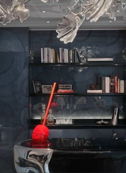 公寓中的茶室彰显了屋主对茶的深厚热爱,将其转化为卓越的艺术表达。这里是一处宁静的绿洲,茶道仪式在这里成为精彩的艺术表演,通过光线、色彩和质感的相互作用,营造出提升品茶体验的氛围。公寓内隐藏的酒窖为葡萄酒收藏家提供了精致一隅,这里配有艺术化设计的吧台,升华了品酒体验。吧台装饰着一件由鲜红棒棒糖组成的艺术品,为空间增添了俏皮、深邃别具意义的艺术气息,让客人可在啜饮浓醇美酒的同式欣赏精美设计。