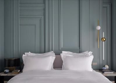 主卧完美融合了现代与古典的设计元素,堪称优雅与精致的巅峰之作。精心设计的墙壁镶板将现代线条与隽永经典线板交织在一起,形成了一幅视觉杰作。精美的金银箔艺术玻璃,与典雅展示柜交相辉映,成为房间焦点所在,散发着高贵的气息,伴随着业主迎接着温暖的清晨阳光。