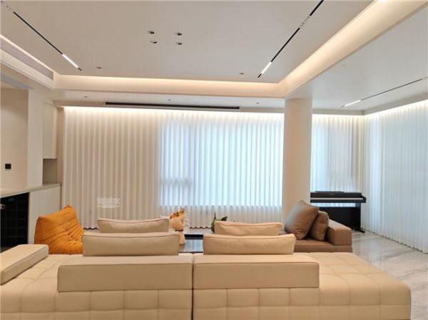 例如水幕帘+客厅纱的黄金组合;水幕帘自上而下圆润饱满、均匀一致,形似水波般灵动而垂顺流畅,为纱帘的颜值加持,呈现出完美姿态,轻松打造客厅视觉焦点。当微风吹过,帘身就像灵动的水波一样层层叠叠,每一处细节都透露着高级感,艺术氛围感拉满!