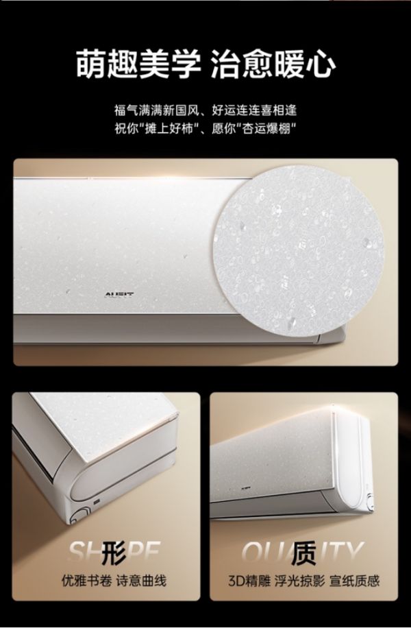潮流美学,提升家居颜值。年轻消费者在选购家电时,不仅关注性能,颜值也是影响购买决策的重要因素。AUFIT设计团队深谙"家电即家具"的年轻消费哲学,“特省电”系列融入国潮美学概念,机身采用高精度激光微雕工艺,结合传统文化元素,让空调兼具实用性和装饰性。