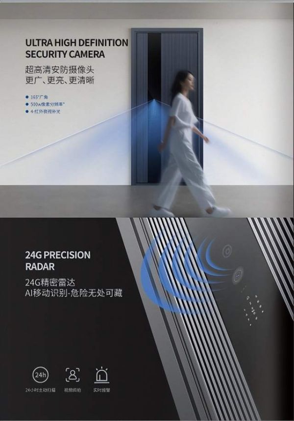 在AI视觉与传感技术的助力下,飞利浦智能门通过24G精密雷达和AI移动识别技术,全天候监测门前动态,实现异常自动预警,做到“危险无处可藏”。超高清安防摄像头则具备165°超广角和500万像素高清成像能力,结合红外夜视补光,无论白天黑夜,都能实时捕捉门前动态,保障用户全时段、全场景的居家安全。