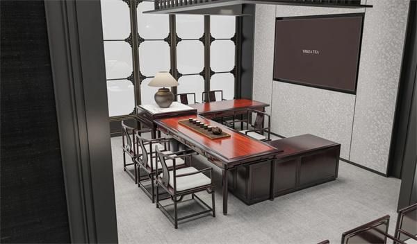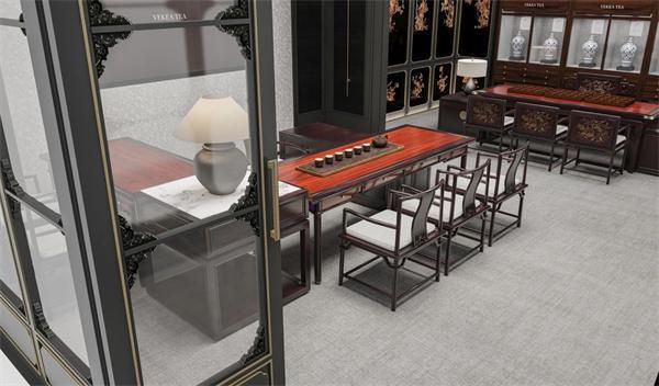 正如茶博会“专业化、国际化、年轻化”的宗旨,友联·茶汐亦在传统与当代的平衡中,寻找红木茶空间美学的当代表达。