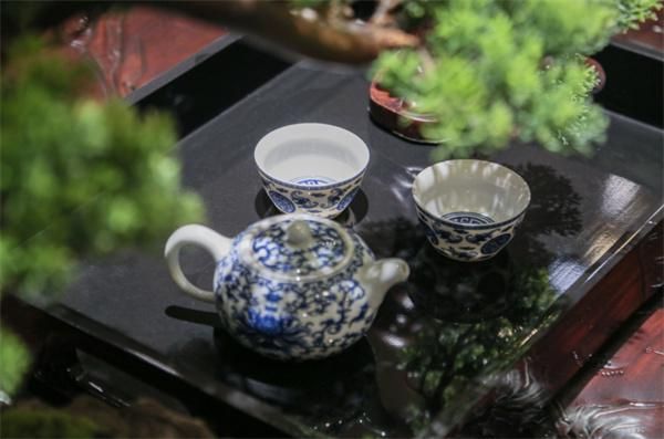 茶器:红木茶台搭配青瓷盖碗、剔透玻璃壶,器物之美在于被使用的温度;