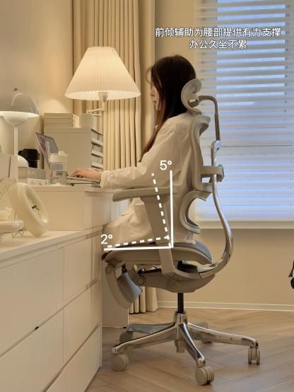 场景化智慧支撑· 伏案模式:座垫前倾5°+腰托前推2cm,分散腹部压力,实测提升专注力30分钟· 午休模式:138°躺角+躺舒宝腿托,秒变日光浴躺椅,腰部承托力持续在线· 游戏模式:腰枕弹力增强档位,应对身体高频微调,告别电竞椅"软塌陷腰"
