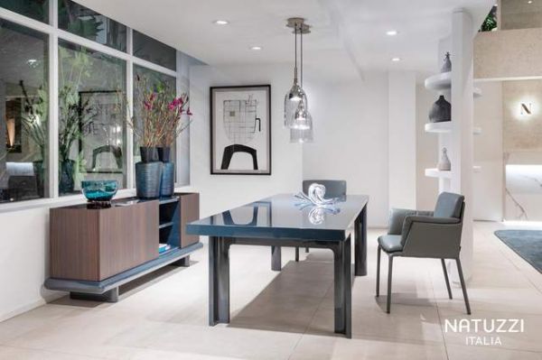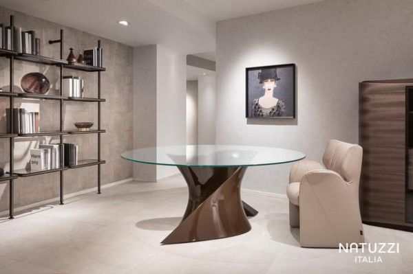 NATUZZI设计中心(Natuzzi Design Center) 以深厚专业积淀与创意能量注入新系列。继获得2024年缪斯设计奖的Uragano项目取得成功之后,设计师Antony Cecca再度以雕塑感语言演绎Valzer餐桌,桌腿如舞者共舞般交织,采用先进CNC技术与高光漆工艺,搭配超白玻璃台面,展现技术与美学的完美结合。搭配极简风格的边柜与陈列柜,玻璃与木质交融,细节精致动人。