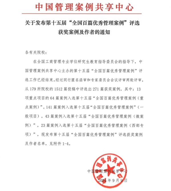 “全国百篇优秀管理案例”作为我国管理案例评选领域的最高奖项,其影响力与权威性不言而喻。该奖项吸引了众多知名院校师生踊跃参与,投稿数量庞大,覆盖企业广泛,被誉为国内管理案例教学界的“奥斯卡”。自2010年启动评选以来,每年举办一届,其评审流程严格遵循国际标准,评选过程严谨细致,获奖案例代表着国内管理案例的最高水平,含金量极高。
