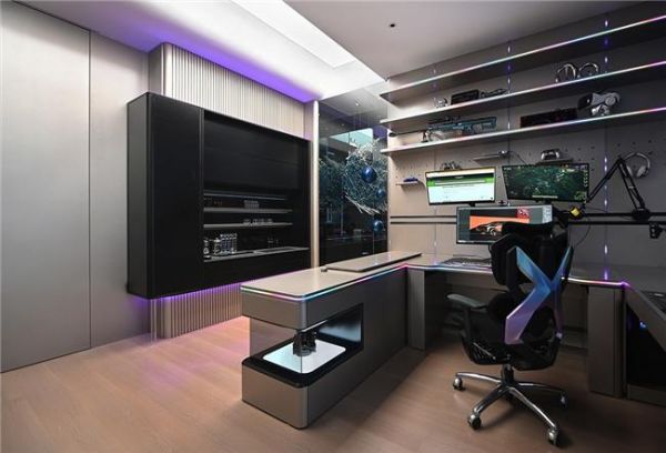 “燃刻”电竞房内配备可升降智能电竞桌,支持坐、站、躺等多种姿势调节,环绕RGB灯带可随心变换色彩,灵活的屏幕机械臂实现多角度视野,带来沉浸式电竞体验;巧妙的可上翻工作台,方便高效创作;智能升降冰箱、旋转零食柜和迷你水吧台,触手可及间满足能量补给;加上可自由配置的洞洞板和极具个性的潮玩展示柜,打造潮酷空间,让热爱成为生活的主场。
