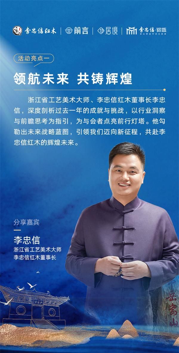 在充满不确定性的市场环境中,李忠信红木始终以“百年企业”的格局锚定航向。本届大会,浙江省工艺美术大师、李忠信红木董事长李忠信将以前瞻性视角剖析行业趋势,发布“五大战略路径”,每项战略将直击行业痛点。李忠信董事长将结合少林禅学中“刚柔并济”的智慧,阐释如何以“守正”夯实根基,以“破局”开辟新局。