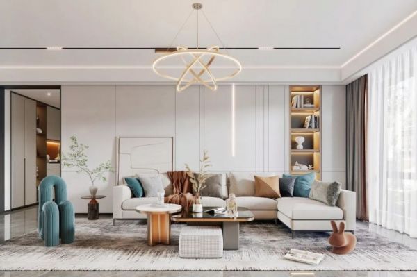 轻奢格调:在极简的基调上,通过精选材质与精致软装元素来提升空间质感。它摒弃繁复造型与浓烈色彩叠加,以经典的黑、白、灰、浅驼、奶咖等中性色为主调,奠定优雅沉稳的基底,再辅以少量墨绿、大红、深蓝或亮黄作为点睛之笔,提示空间亮度,赋予活力感;同时可运用温润的大理石、冷冽的金属、剔透的玻璃、华贵的丝绒与质感皮革,巧妙搭配,共同营造低调的奢华氛围。简而言之,轻奢是简约之上的精粹,是现代审美中低调的奢华表达。全屋整装中想拥有极简的风格、又不想失去空间的层次和品质,可以选择轻奢风格。