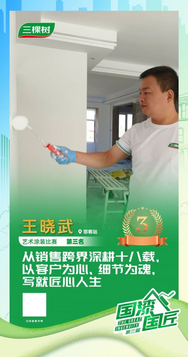 2025三棵树“国漆国匠”大赛邯郸站艺术涂装铜牌匠人王晓武:从销售跨界深耕十八载,以客户为心、细节为魂,写就匠心人生