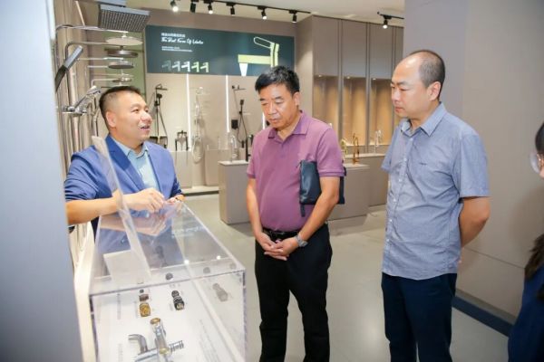在何总的陪同下,王会长首先参观了华艺卫浴的品牌展厅,全面了解华艺卫浴30多年的企业发展历程、产品矩阵及核心技术。何总介绍,华艺卫浴自成立以来,便秉持对高品质产品的执着追求,深耕技术领域,依托强大的研发实力和创新能力,不断推出引领市场潮流的卫浴新品。王会长对华艺卫浴极具个性化的产品设计给予高度的评价,并赞其“是华夏的艺术之光”。