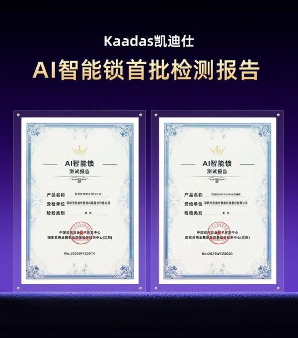 凯迪仕传奇大师K70 SE与凯迪仕P30 Pro Max双摄版两款产品率先通过权威检测,成为首批符合新标准的高品质AI智能锁产品,多重权威认可进一步印证了Kaadas凯迪仕品牌实力与产品创新方面的行业标杆地位。