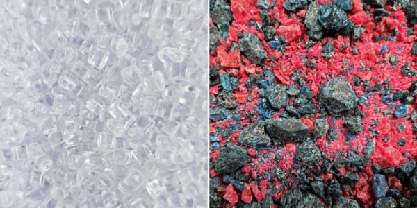 ▲聚苯乙烯原料——全新料(左)与回收料(右)