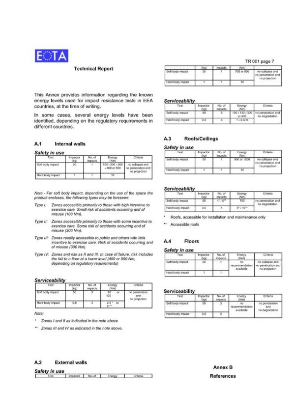 ▲EOTA对于刚性冲击测试的说明及测试建议
