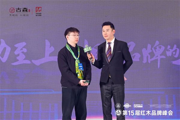 古森红木总经理吴建宇获“杰出青年企业家”,接受央视节目主持人肖贵宁的采访