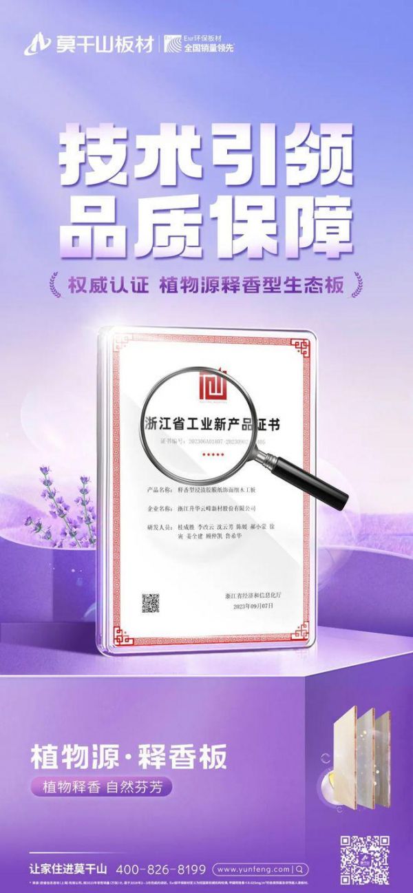 莫干山植物源释香板:凭行业首创实力斩获权威认证,改写家居板材历史