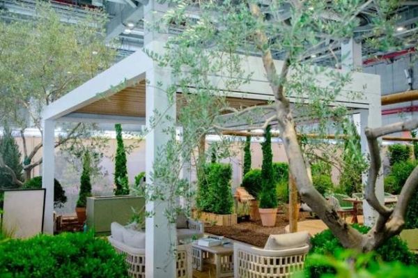 在这个花园生活体验中心内,TOSCANA的室外电动翻转百叶篷(PERGOLAM)巧妙地融入场景设计中,与绿植、光影共同构筑出一个半开放的休闲空间。这个空间的独特之处在于,它既保持了与自然对话的开放性,又通过精妙的设计赋予了场所应有的私密与舒适,让观展者能够沉浸式体验室外生活的静谧与美好。