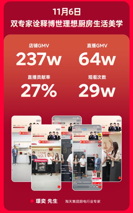 在全品类产品精彩亮相的同时,直播间内的关注热度与用户互动持续攀升。两场直播累计观看人次达36万,店铺GMV突破430万元,展现出强劲的品牌影响力与消费认可度,也生动体现了消费者对品牌理念与产品价值的高度认同。从冰箱的精准储鲜到洗衣机的细致呵护,从洗碗机的洁净保障到厨电的烹饪体验,博世家电凭借对卓越品质的坚持与对生活美学的深刻理解,赢得了消费者的真诚选择。这一亮眼表现不仅印证了品牌在高端家电市场的稳固地位,更彰显了其以“卓越感知效益”与“持久完美结果”为核心的品牌价值。