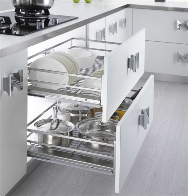 ·厨房拉篮:包括碗碟拉篮、调味拉篮、转角拉篮等,充分利用柜内空间,保持台面整洁,适配不同厨房场景需求。
