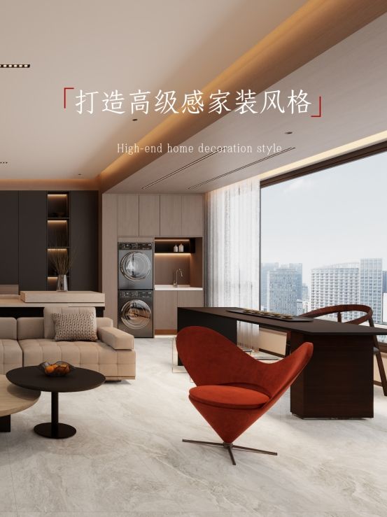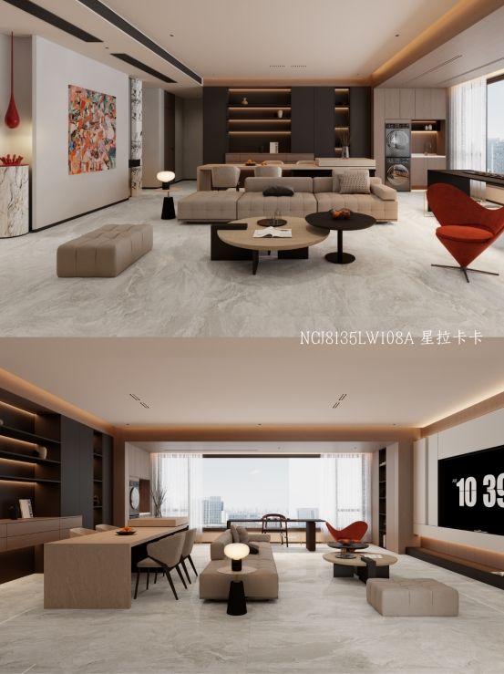墙地对缝通铺600*1200柔光砖,显大又高级