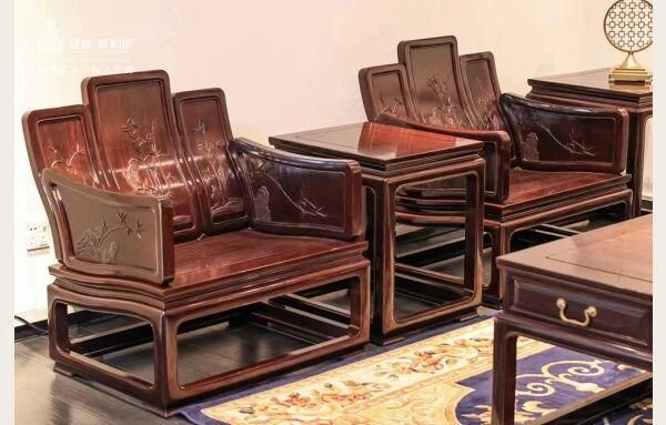 泰和园以“私人定制”见长,擅长运用丝翎檀雕技法。其《梅兰竹菊》系列紫檀家具精选优质木料,将艺术性与实用性完美融合,满足高品位消费者需求。