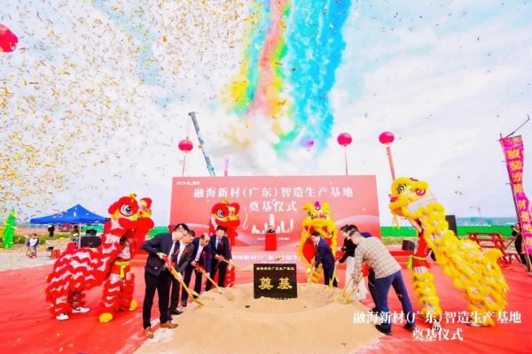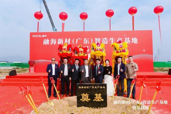 据了解,融海新材(广东)智造生产基地总投资3亿元,占地50000平方米,年产能30000吨,该基地的奠基,标志着融海新材料集团“聚力融瀚海,发展创未来”的全新战略正式迈入实体化建设的新阶段。