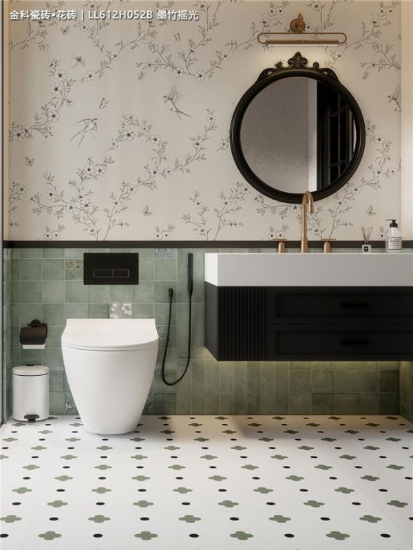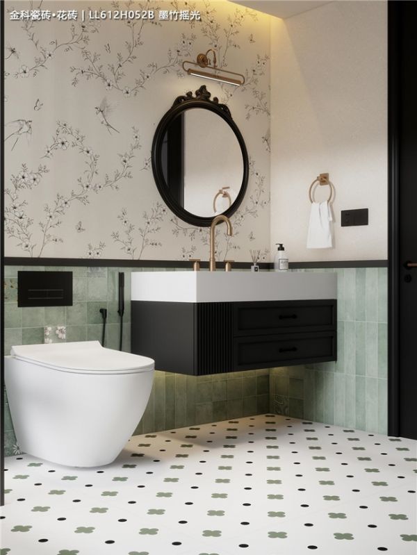 色彩呼应:从花砖中提取1-2个主色,延伸到浴室柜、织物等软装上,空间整体不杂乱。