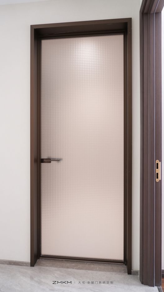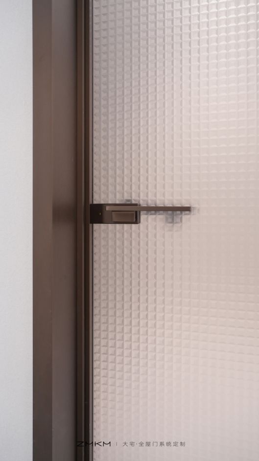 ZMKM芝麻开门水立方平开门的点睛之笔,无疑在于其选用的超白水立方油砂玻璃。超白玻璃基底拥有极高的透光率和纯净度,显得格外透亮、清澈,确保了光线最本真的通过。玻璃表面,通过精密的车刻工艺,雕刻出无数规则排列的小方格,犹如“水立方”一样。这些立体的方格不仅构成了美妙的几何韵律之美,更实现了透光不透影的隐私保护功能。