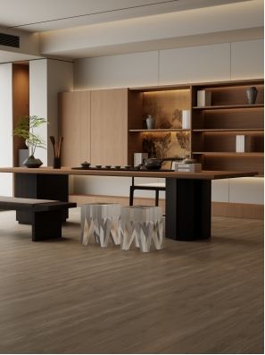 被朋友夸爆的新中式茶室,秘密居然是木纹砖!