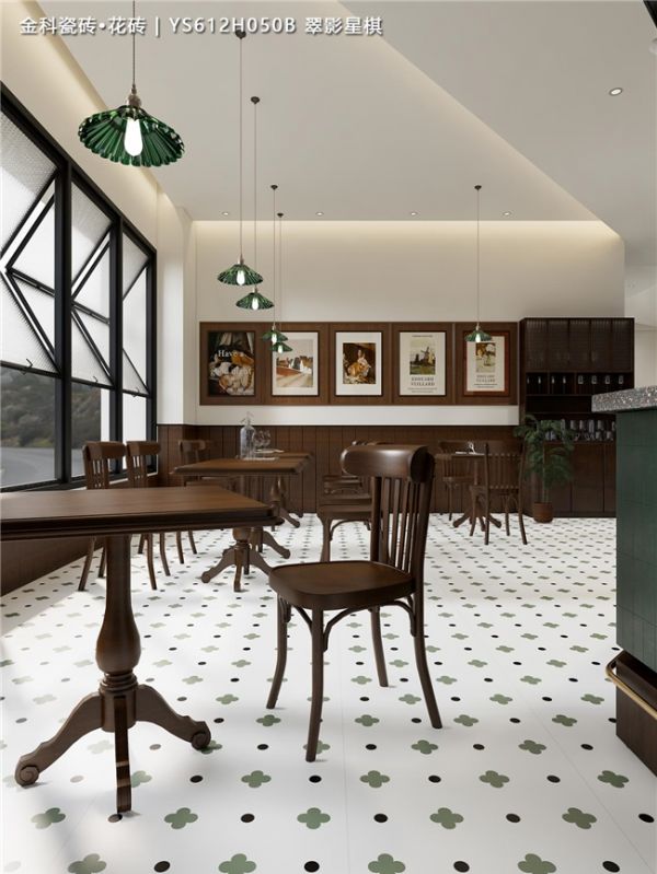 在餐厅或厨房铺开,与深木色家具、复古吊灯、装饰画搭配