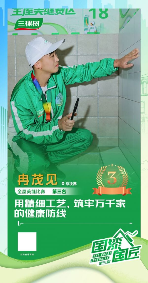 近日,2025三棵树“国漆国匠”全国建筑涂装职业技能总决赛在福建莆田圆满落幕。冉茂见凭借对工艺标准的严谨遵循,以及对家居健康的高度责任感,在全屋美缝赛项中荣获季军。他始终坚信:“缝隙虽小,却关乎家居品质与耐久”,将每一道缝隙的完美处理,视作守护千家万户洁净与健康的庄严承诺。赛后,网易家居与冉师傅展开深度对话,聆听他如何将“好房子”的国家战略,落实于方寸缝隙之间。