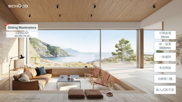 全景推拉系列 AS PD 75.HI 以35mm极窄可视面宽,打破室内外空间的视觉隔阂,无障碍门槛设计更让美学与实用无缝衔接。