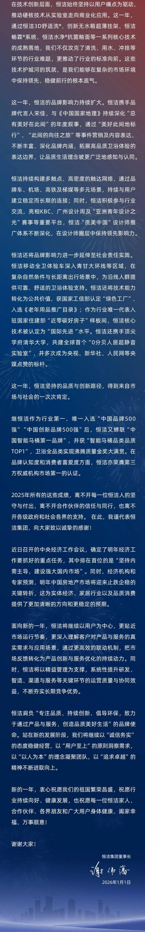 网址: 持质而行,进取向新 | 恒洁集团2026年新年贺词 http://m.fulushijia.com/newsview80449.html
