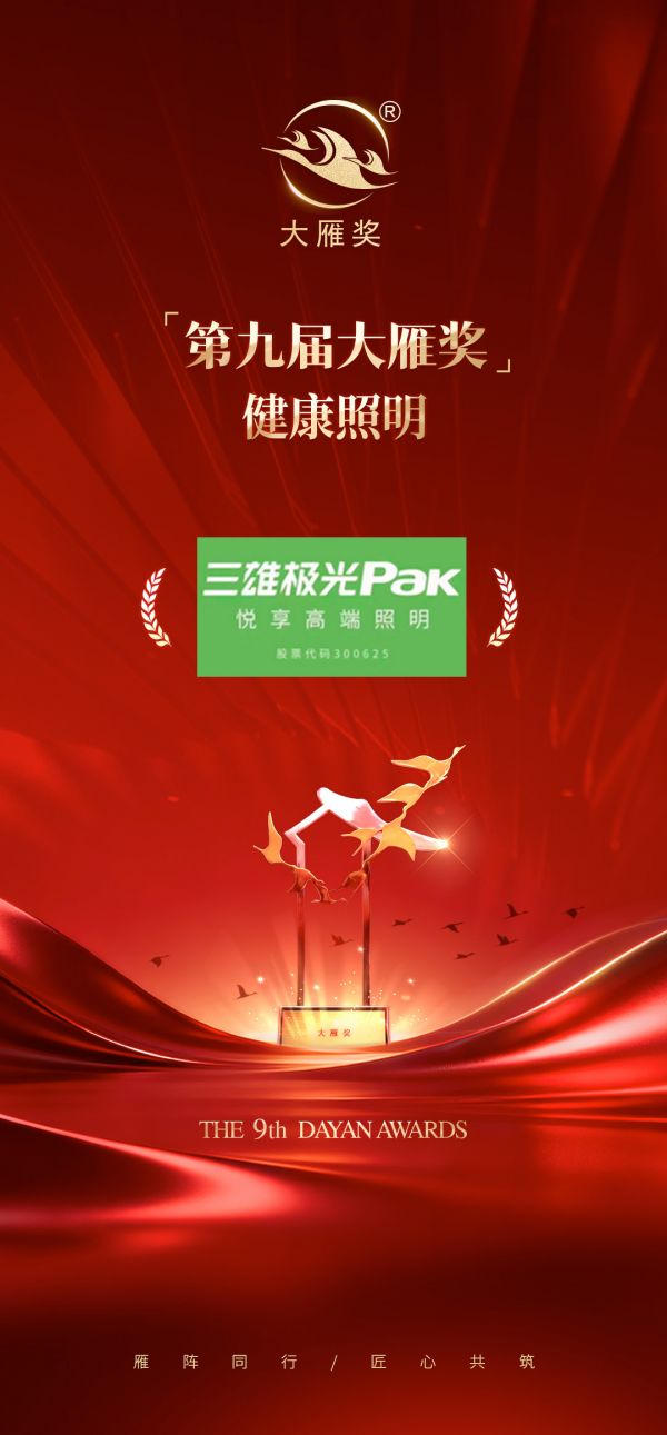 权威加冕!三雄极光荣膺「第九届大雁奖·中国家居行业健康照明」奖项