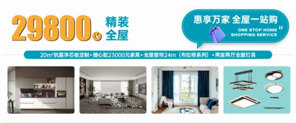 不用费时费力跑建材市场、灯饰城、家具和布艺门店,在太子家居,29800元轻松搞定全屋定制、家具、窗帘和灯具:定制用材上,太子家居采用20m²ENF抗菌净芯板材,为全屋定制提供环保基础;家具上,随心配23000元家具,满足不同风格和功能需求;窗帘上,包含全屋窗帘24m(布拉格系列);灯具上,涵盖两室两厅全屋灯具,完善家居全屋搭配效果。一站式配齐,省心省力省预算!