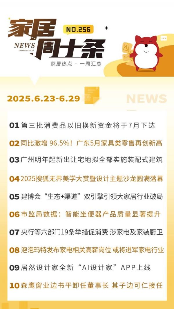 家居周十条 | 2025搜狐无界美学大赏圆满落幕、央行等六部门19条举措促消费、广东5月家具零售创新高…