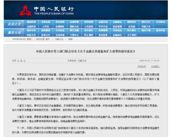 6月24日,央行等六部门联合发布《关于金融支持提振和扩大消费的指导意见》,从支持增强消费能力、扩大消费领域金融供给、挖掘释放居民消费潜力、促进提升消费供给效能、优化消费环境和政策支撑保障等六个方面推出19条重点举措。