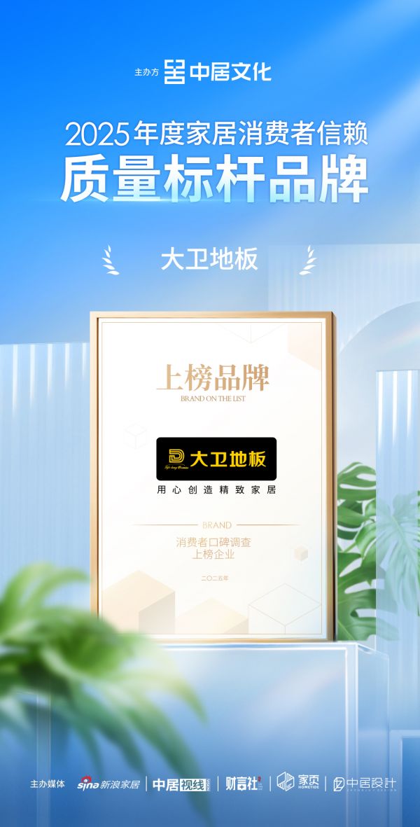 喜报!大卫地板荣获「2025年家居消费者信赖质量标杆品牌」称号