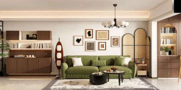 在材质上,沙发可以考虑灯芯绒、天鹅绒或真皮材质,既能保证舒适度,又能轻松营造复古氛围。