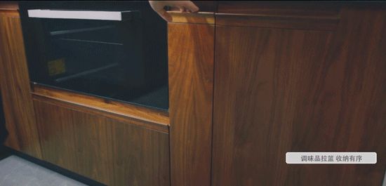 橱柜结构确定后,接下来要费心的就是橱柜内部的设计了。我家燃气灶下方装的就是蒸烤箱,上面炒菜、下面蒸烤,美食出炉不耽误。建议大家给家电预留位置,完全不用担心厨电越买越多、空间越用越少。同时安装调味拉篮,专门放置调味品,做饭时会方便不少。柜子转角处,强烈安利小飞盘,能够把转角的空间都利用起来。