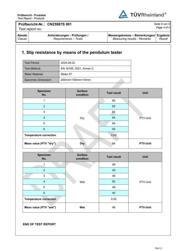 Anti-slip performance test (dry friction coefficient ≥ 0.8)